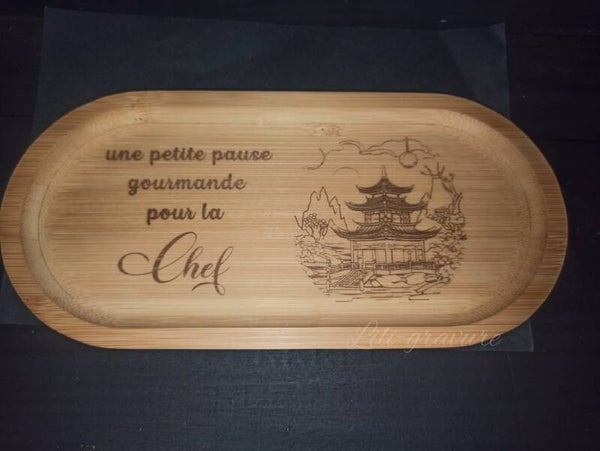 Ce petit plateau ovale en bambou , sera ideal pour y poser tasse et gourmandises .